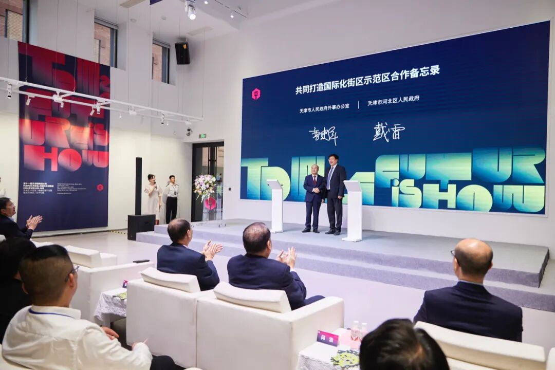 9月20日,第十一届天津国际设计周在天美艺术街区盛大启幕。天津市人民政府外事办公室主任栾建章,天津市河北区委副书记、区长戴雷,美术学院党委书记路波,天津市文化和旅游局副局长陈冰,北京国际设计周有限公司董事长王昱东,中国建设银行股份有限公司天津分行副行长石毅超,天津美术学院副院长陈占权等领导出席,京东方、北京蓝色光标、奥森时尚等科创文旅企业以及来自北京、天津市、河北省、香港设计师代表参加启动仪式。