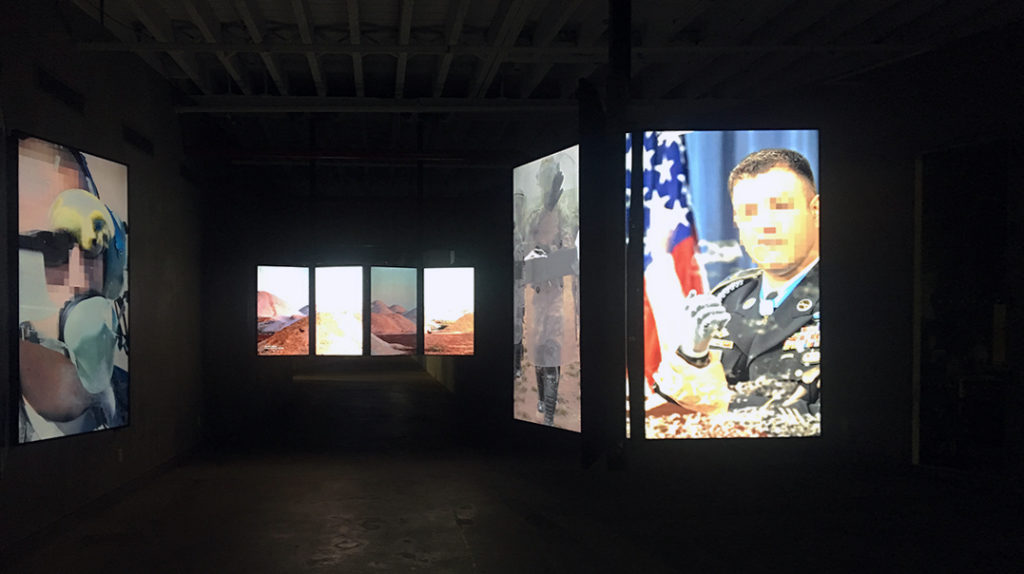 For their first exhibition, A/D/O invited architect/thought leader Jeffrey Inaba of Inaba Williams, and graphic designer and former AIGA NY vice-president Glen Cummings of MTWTF, who are happily accustomed to challenging disciplinary boundaries, to conceive an exhibition on the theme “Utopia – Dystopia.” Inaba and Cummings, whose firms have frequently collaborated over the last decade, created the entire exhibition, researching the theme, producing and creating the video content, and designing the physical experience of the hanging digital triptychs.