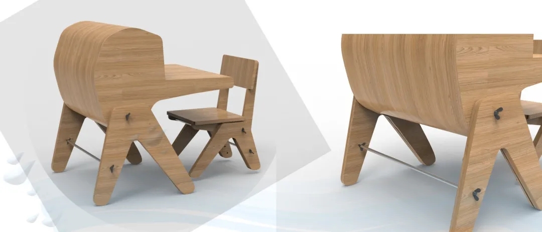 “小海豚”集成竹材料和金属结合的可爱风格,运用榫卯结构,整体稳固,考虑儿童使用多处为圆角设计,更加突出海豚的圆润可爱。
