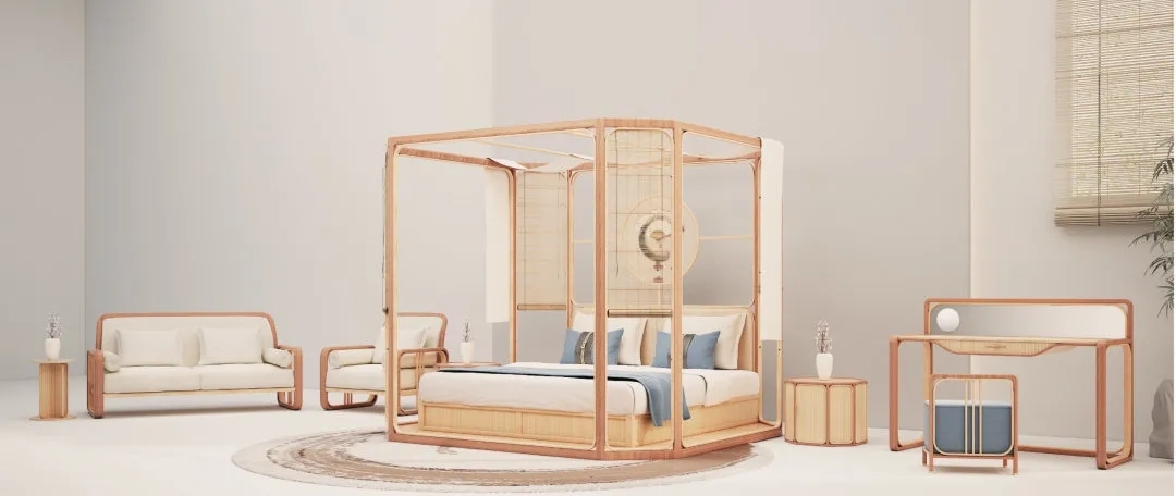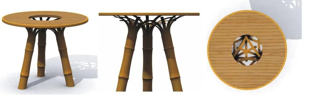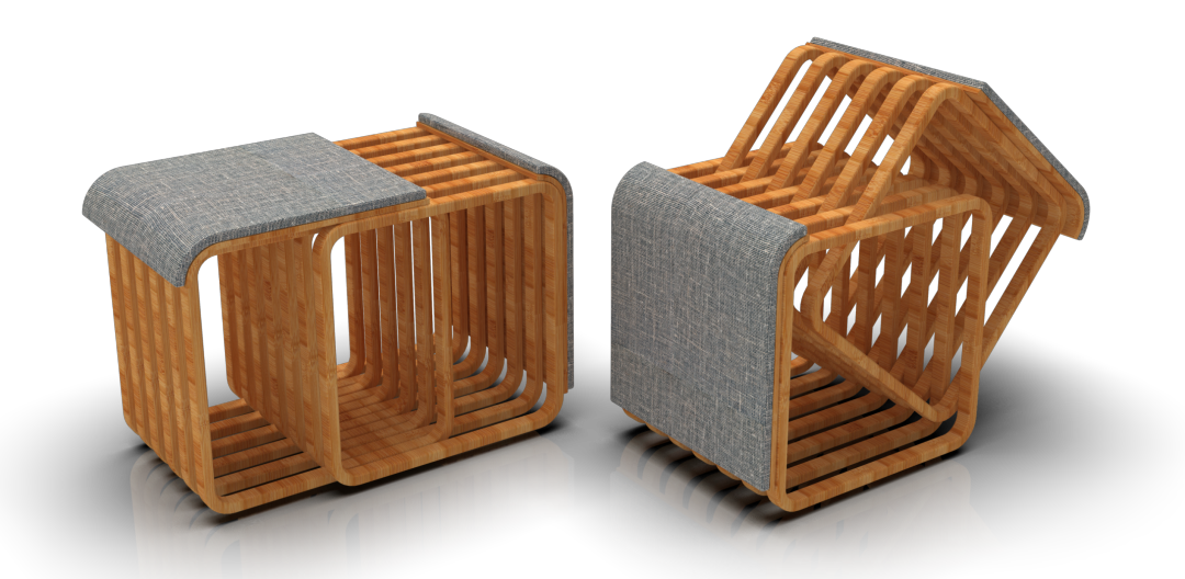 以竹材为原料,融入“合”的灵感,对竹材料的再加工使之相互融合。体现了“家和万事兴”的传统,又实现了可组合,可拆卸,省空间的设计理念。