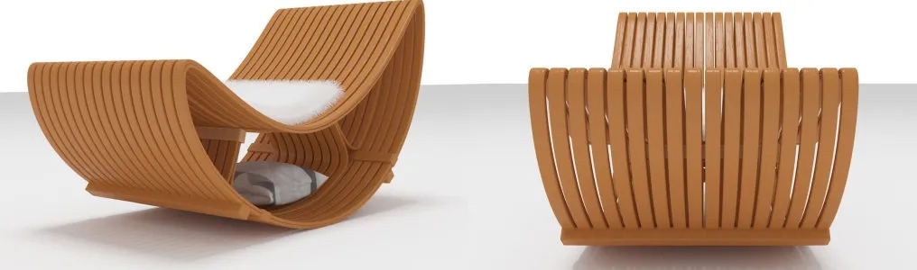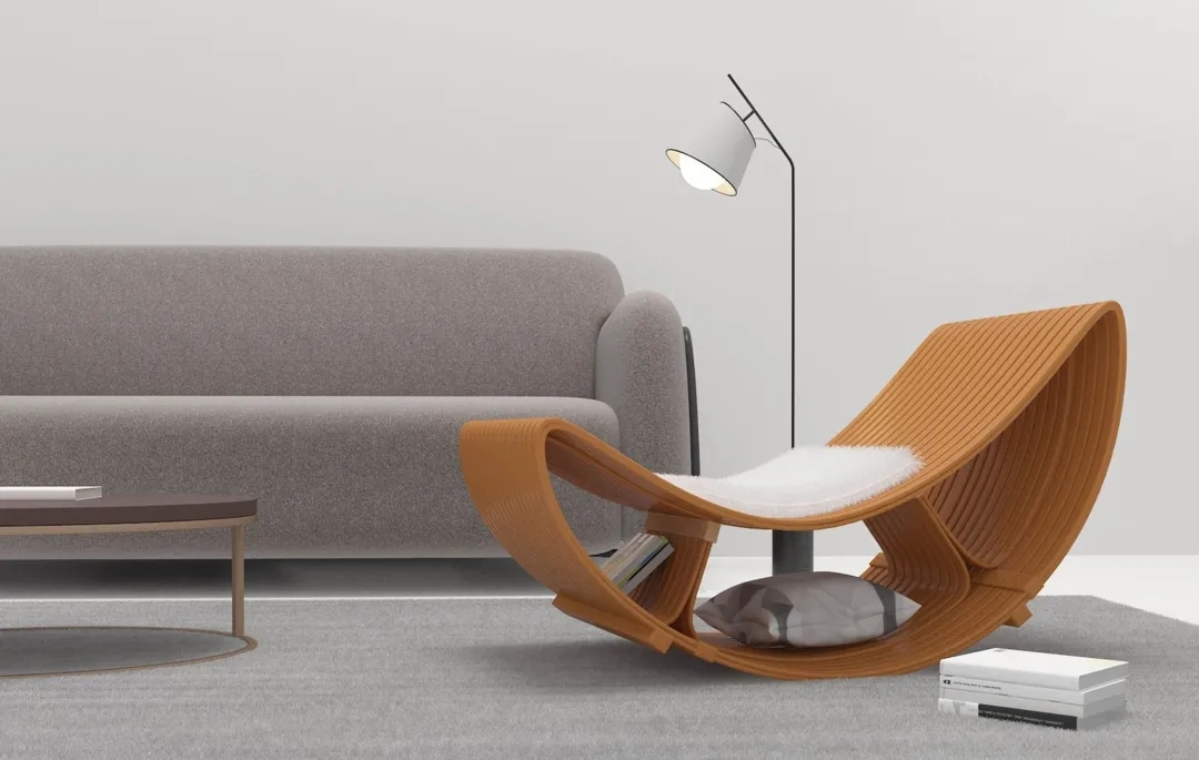 弧形造型赋予家具有趣的摇动形式,增加家具趣味性,休息的同时还能增加人与家具的互动性。