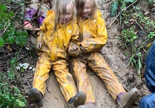 在泥地里尽情玩耍(图片来源:https://littleriverschool.com/how-to-dress-for-forest-school/)