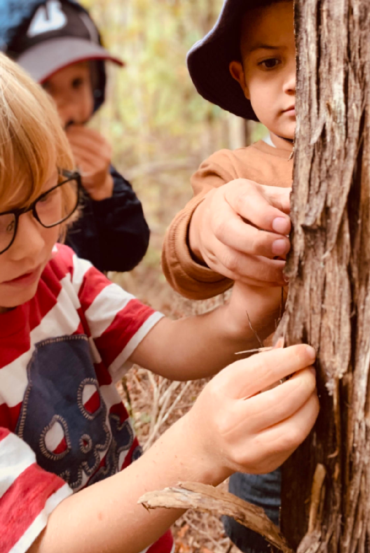 最具有代表性的活动之一就是爬树。爬树不仅有趣,还会用到许多在日常生活中不会用到的肌肉群,是一项很好地锻炼。树木的触感和风吹树叶的沙沙声还可以帮助感官的发展。另外,爬树是有风险的,教师会引导孩子们进行危险评估,培养了他们的危险意识。