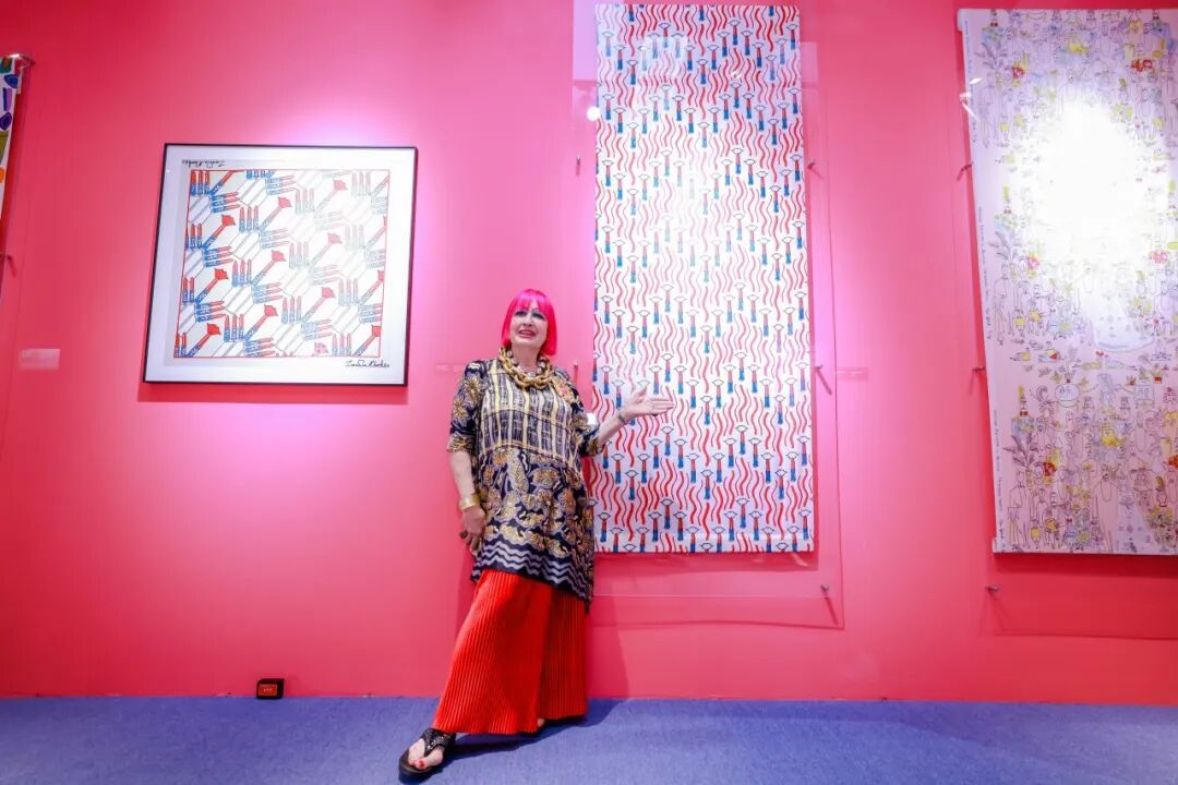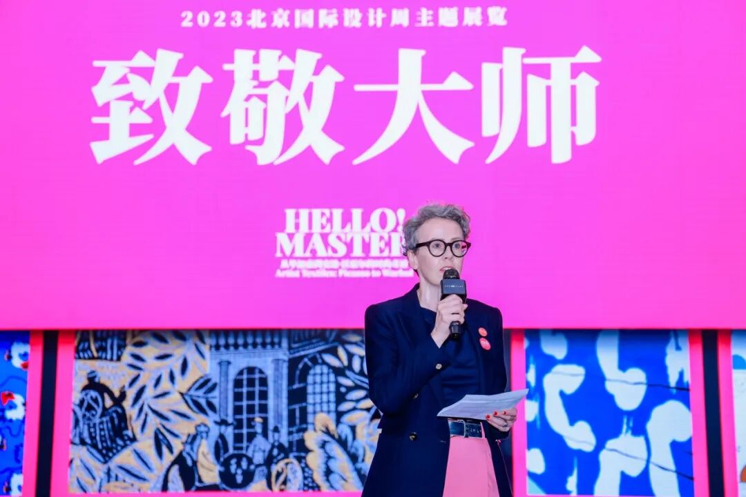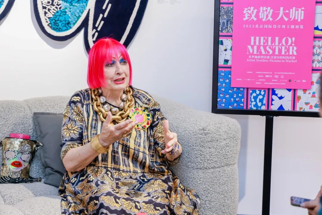 在随后的展览参观中,桑德拉·罗德斯女爵对她于20世纪60年代创作的个人作品做了重点介绍,其中包括她最成功的“高级铜徽”设计面料和她最受欢迎的“唇膏”设计面料。桑德拉·罗德斯女爵还向到访的媒体朋友展示了她为正在筹备中的中国设计博物馆捐赠的首批藏品中的一件。这批藏品部分已于9月21日在2023北京国际设计周开幕活动上正式交接给了北京国际设计周组委会。