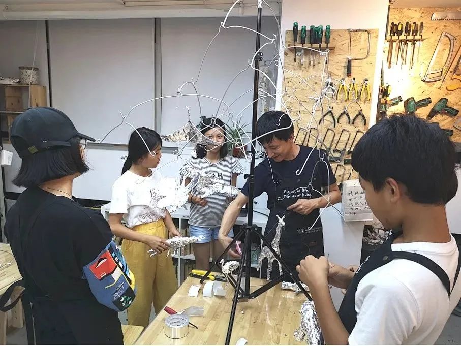 回到《生境链》作品本身,孩子们在创作《生境链》的过程中,通过对动物形体创作,以及挂在平衡装置中寻找装置的整体平衡这样一个行为,体验到生态系统的平衡就仿佛我们装置中的物理平衡一样,需要在人类需求与生态可持续发展中需求一个更好的关系,孩子们把自己想象成一种动物,在设计制作的过程中来理解生态平衡与自身之间的关系。