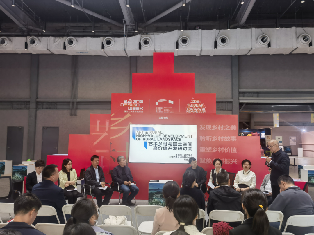 2023年10月9日,由北京市农村经济研究中心、中国国土经济学会共同主办的艺术乡村与国土空间高价值开发研讨会在北京国际设计周永久会址成功举办。此次研讨会是北京国际设计周·2023首届北京艺术乡村博览会的学术活动之一,采取嘉宾对话与专题演讲的形式,围绕“艺术乡村从概念研讨到实践运营”“艺术乡村与国土空间高价值开发”“乡村新场景新消费”三个主题展开。来自自然资源部、农业农村部、北京市农业农村局、北京市规划自然资源委相关部门的领导,以及城乡规划、建筑设计、文旅运营等领域的专家学者、基层干部、大学生代表50余人参会。