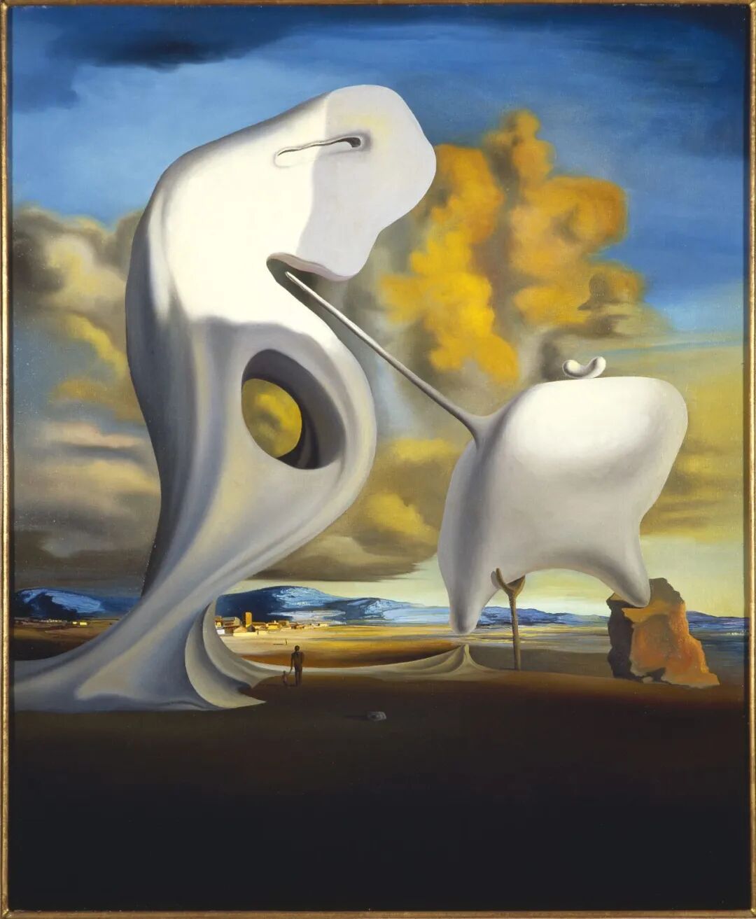 达利塑造了一个介于真实和想象之间的图景,在有着强烈而独特光线的天空下,是其他 神秘的元素。这幅画的美在于色彩鲜艳的细节以及黄、绿、蓝的极致运用,这三种颜色可以在画面所有颜色中被捕捉到。