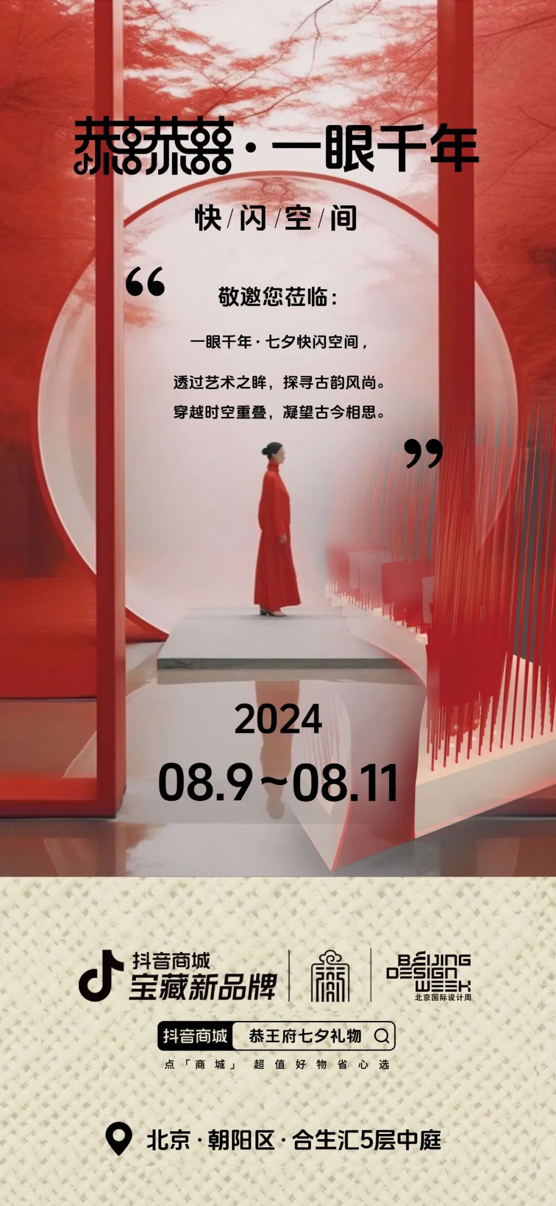 [一眼千年]快闪空间以恭王府竹林为灵感来源,郁郁葱葱的红线交错在纯白空间之上,交织出绵绵情意。置身其中,可深切感受“红豆凝望古今的相思之情”,祝愿我们在七夕降临美好爱情与倾慕双眸。