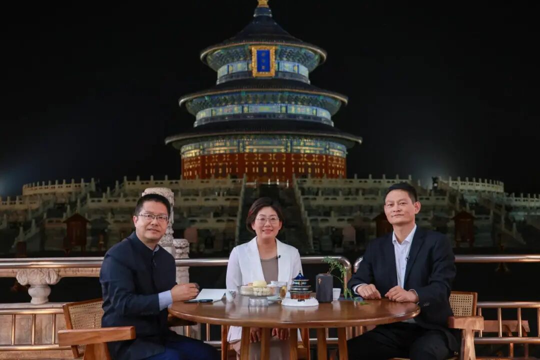 直播由北京国际设计周有限公司董事长王昱东主持,并特邀北京市天坛公园管理处宣传科科长吕玉欣、保利集团中艺东方经贸发展有限公司总经理助理张金鸽共同参与,以文化漫谈的形式,围绕“敬天祈运”与“中秋团圆”两大主题展开深度对话。在祈年殿庄重恢弘的背景映衬下,三位嘉宾娓娓道来,从天人合一的哲学思想,到中秋团圆的人文情怀,从东方美学中的仪式感,到天坛建筑中所蕴含的古代智慧,层层推进,引人入胜。
