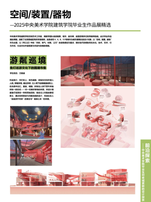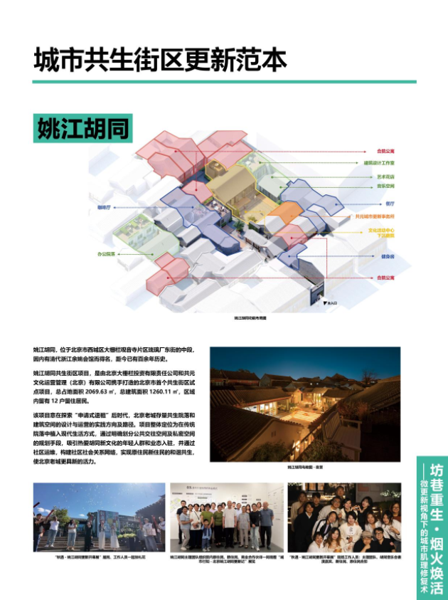 展览内容有北京中海大吉巷、北京坊、天桥演艺区、城市共生街区更新范本——姚江胡同、菜市口西片城市更新项目、JM咖啡白塔寺店、白塔寺胡同大杂院改造、白塔寺“未来之家”、白塔寺杂院装配式智能模块设计、空间/装置/器物——2025中央美术学院建筑学院毕业生作品展精选、西城景影等。