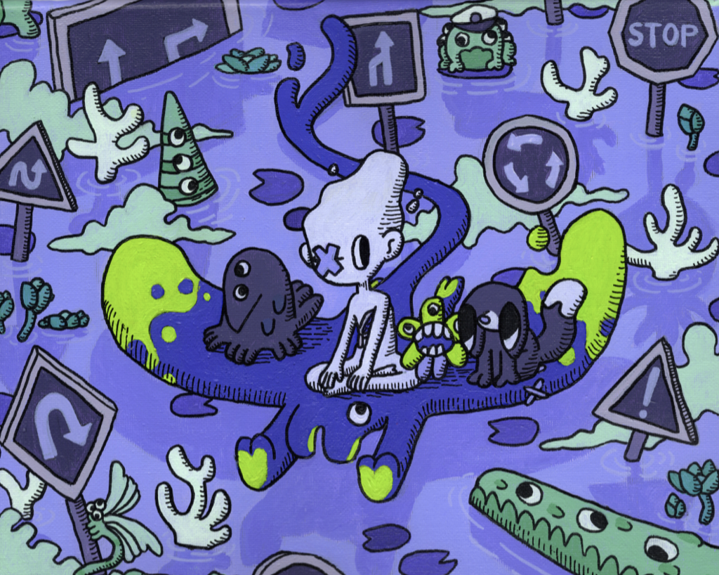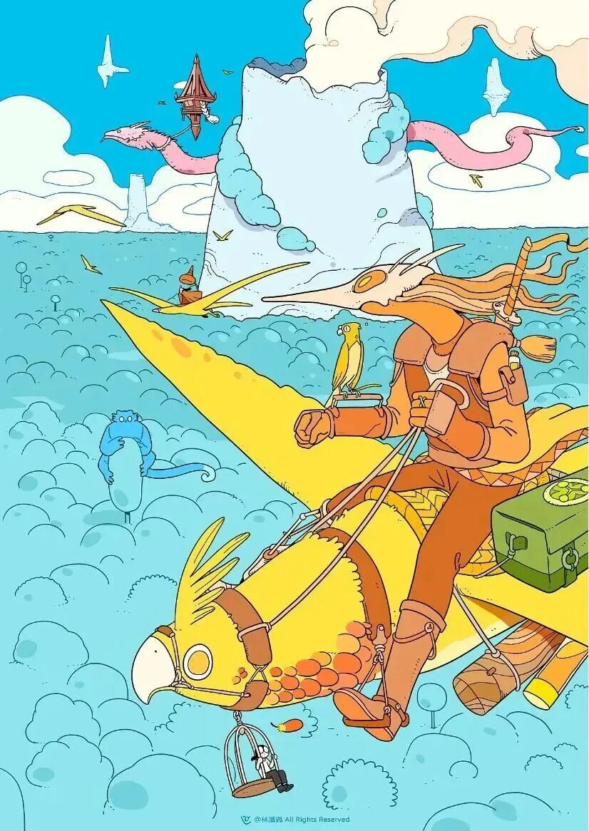 林遭遇这个形象创作于2008年夏日,为了排解迷茫,决定每天绘制一张插画,让小小的自己行走其中。合集为《逃避型人格》,在站酷发布,2024年出版作品集《别怕这世界终会爱你》创作的初衷一直没有改变,是为了看到于日常不一样的世界,让孤独的内心有一处栖息之地。
