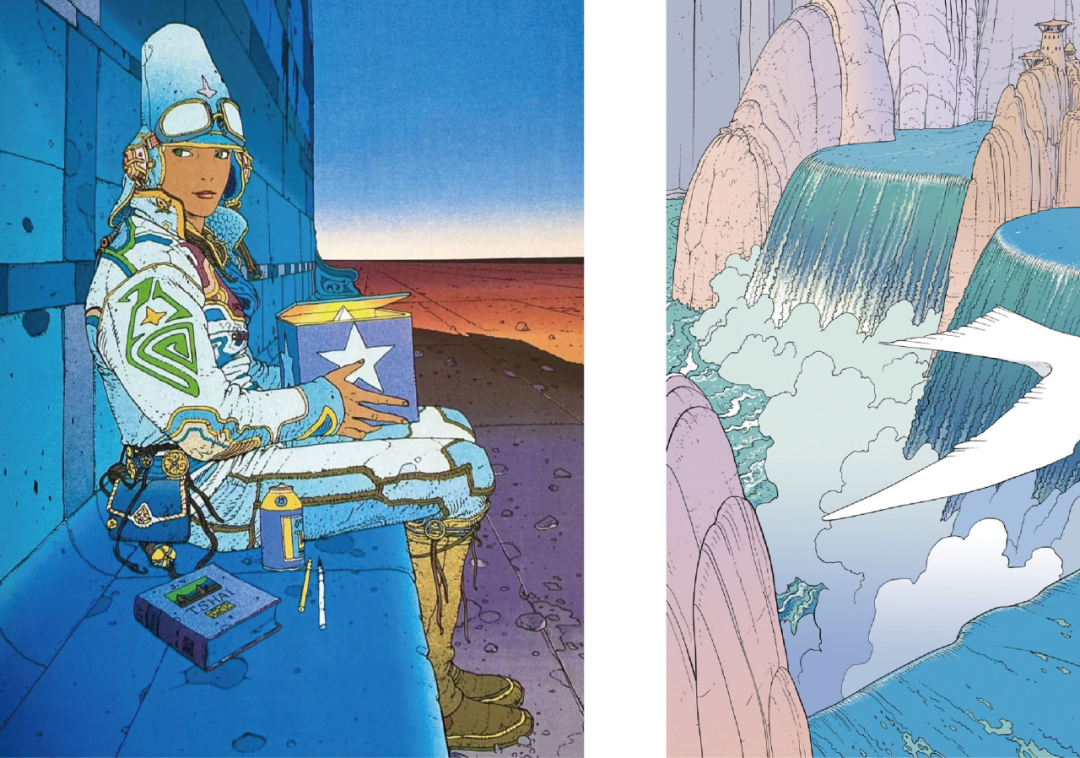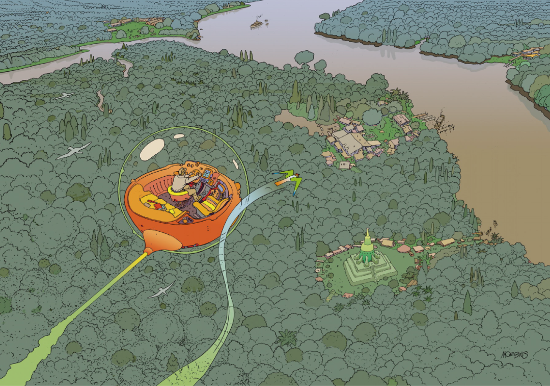 Moebius(莫比斯1938-2012)本名 Jean Henri Gaston Giraud(让-罗,台译“尚·纪劳”),法国漫画大师,目前世界上知名度最高、影响力最深的欧洲漫画家。他的作品颠覆了漫画艺术作品的角色创作原则,并在科幻、概念艺术、超现实主义、插画、电影、音乐以及很多其他创意领域中有着巨大且超前的影响力,开创了全新的漫画形式及创作思维引导。他拥有作家、漫画家、导演、制片人等诸多头衔,以神秘、奇幻的风格著称,是《第五元素》《深渊》《异形》等影片的原创艺术家,曾参与了《星球大战》等经典科幻电影的制作。