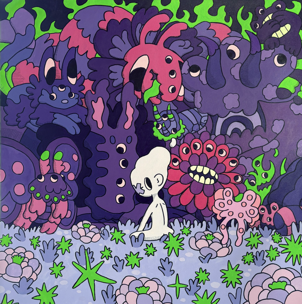 独立艺术家,2021年开始创作NFT,2024年转向实体作品。他以大胆的黑色线条和紫色和绿色的调色板而闻名。受到漫画和漫画的启发,他创作了《独眼人》,这是一个象征激情和专注的宇宙。他的角色Misteye探索了不确定性和自我发现的主题,邀请观众进入一个充满问题、色彩和想象力的世界。