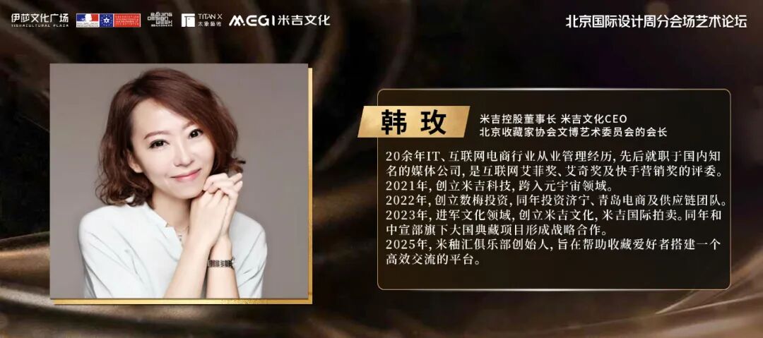 16:05-16:40 实战解析:韩玫董事长聚焦艺术收藏市场模式,分享米吉文化在拍卖领域的创新实践,让艺术收藏从“小众迷雾”走向“大众可及”。同时分享“米秞汇”平台如何为藏家搭建高效交流渠道。