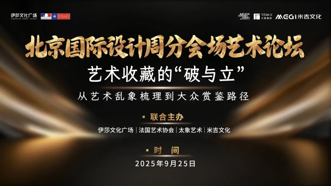 2025年北京国际设计周热度正盛,一场聚焦艺术收藏领域“破局与重构”的重磅论坛即将于9月25日14:00-18:00在伊莎公共文化中心拉开帷幕。本次“艺术收藏的‘破与立’——从艺术乱象梳理到大众赏鉴路径”主题论坛,由伊莎公共文化中心、法国艺术协会、太象艺术、米吉文化联合主办,集结国际艺术学者、资深藏家、美术馆馆长等重量级嘉宾,旨在拆解市场乱象、梳理收藏逻辑,为大众搭建从 “小众赏玩” 到 “文化共识” 的艺术收藏桥梁。