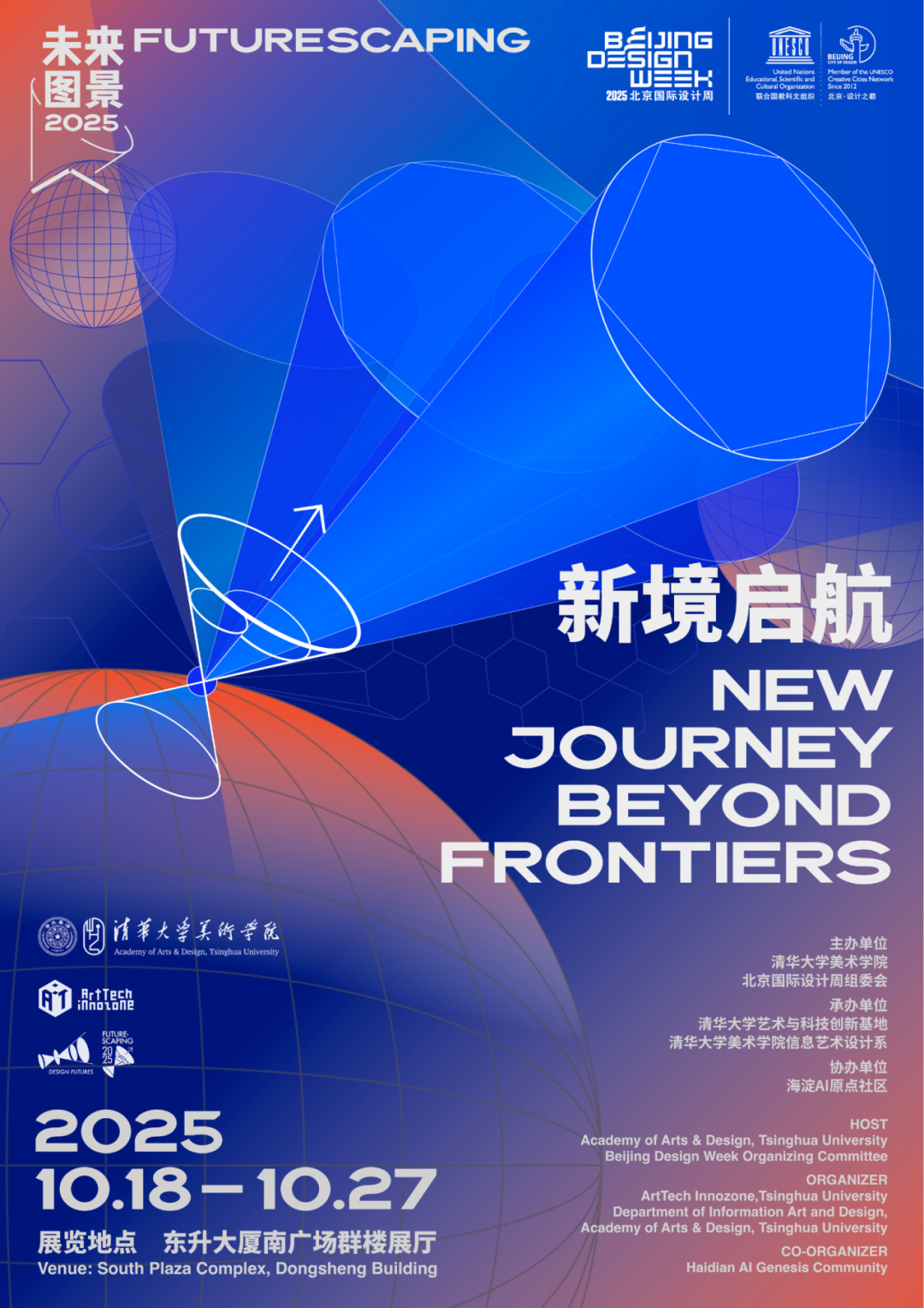 2025年10月18日,由清华大学美术学院与北京国际设计周组委会联合主办的 “未来图景 2025:新境启航” 主题展览,将在北京东升大厦南广场群楼展厅开幕。作为 2025北京国际设计周的核心主题展览,本次展览以 “多行星文明” 为核心,届时将通过具身体验、人工智能与混合现实等前沿技术,为观众开启一场关于人类未来生存与星际文明共创的全新深度探索。