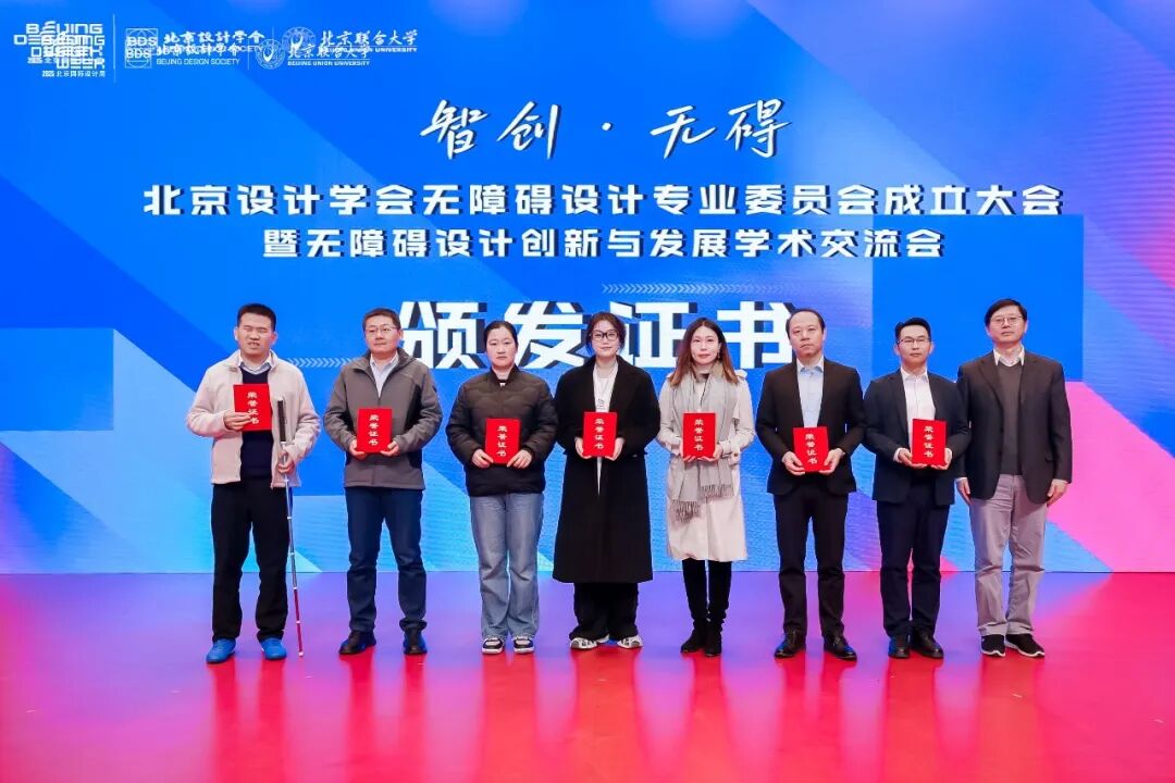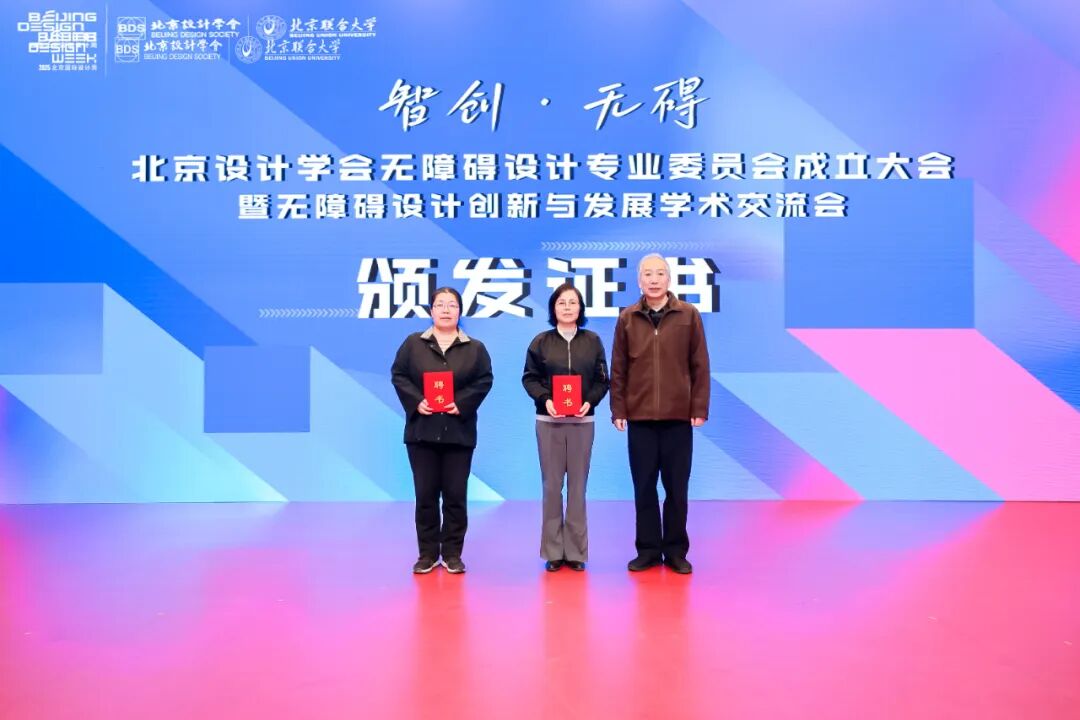 会议现场,北京设计学会秘书长助理王洋宣读了关于同意北京设计学会无障碍设计专业委员会正式成立的函。由宋慰祖和张萌萌共同为专委会揭牌,标志着无障碍设计专委会正式起航。专委会旨在凭借专业优势,以科学、严谨、开放的态度,关注无障碍设计、通用设计、包容性设计的创新应用领域的学术交流与合作,聚焦于设计学与计算机科学、心理学、教育学、语言学交叉学科研究与应用,推动无障碍设计方法论、设计研究与应用、设计标准等重要研究,搭建无障碍设计的政产教研协同平台。