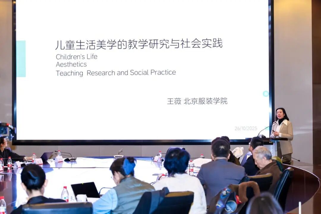 第一场圆桌论坛以 “实践创新视角 —— 儿童生活美学场景化设计与成果转化” 为主题,由王薇主持,北京服装学院艺术设计学院副院长宋晓薇、中国传统工艺振兴计划协同创新中心主任沈华菊、中央美术学院团委书记卫艳、北京服装学院副教授谢天晓共同参与,围绕儿童友好城市建设中 “安全功能” 与 “美学体验” 的平衡、儿童文创产品 “儿童视角” 的体现、校园美学成果转化路径、美育机构与校园公益化合作模式等核心问题交换意见,形成诸多具有实操性的共识。