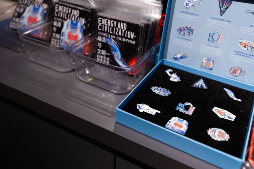 展览也精心打造的文创系列,在展览中选取最具代表性的科学符号:精致的冰箱贴复刻了托卡马克装置、真空室等核心模型,让“人造太阳”的梦想点缀于日常生活;一套九款的系列徽章,带您细数托卡马克的精密构造;独特的杜邦纸袋,将澎湃的主视觉化为流动的风景;而互动水敏卡,则巧妙结合文献墙打卡,在从无到有的变幻间感受“显现”能源的奥秘。