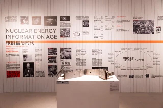 展览中的文献墙依据能源使用类型的演变划分为青铜时代、铁器时代、工业时代及核能时代等不同历史阶段,并通过这一脉络展示了人类对能源利用方式的演进。其中隐含一条贯穿始终的核心线索,即对温度控制能力的不断增强:从石器时代仅能利用火的普通温度,到核能时代电子温度1.6亿度的实现,体现出人类随时代发展对能源掌控力的显著提升。