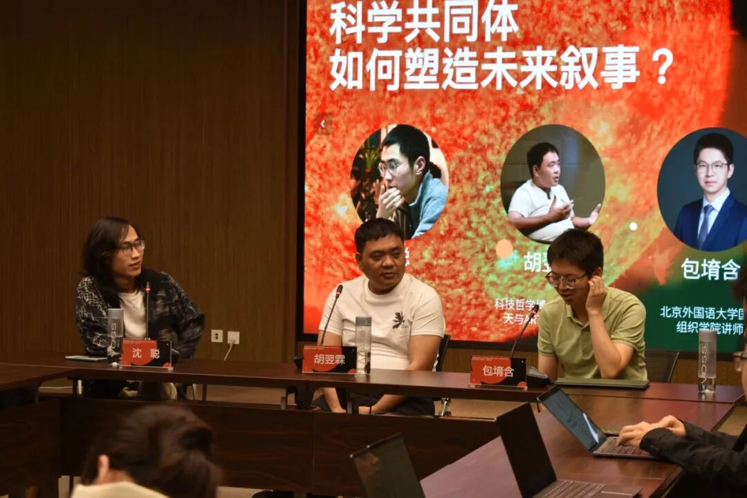活动邀请到北京大学哲学博士、曾任清华大学科学史系副教授胡翌霖、北京外国语大学国际组织学院讲师包堉含以及产业代表极因造物联合创始人兼CEO高任骋展开对话,共同探讨科学共同体如何通过与政策、资本、艺术等领域的互动,构建社会对技术未来的集体想象,推动公众参与未来构想。