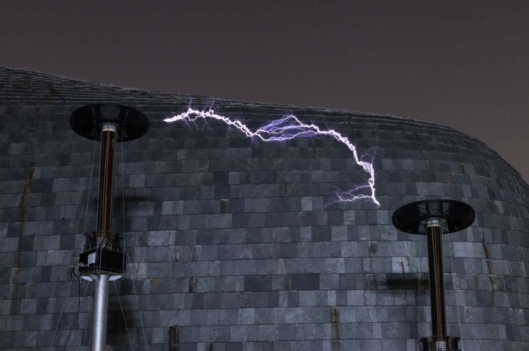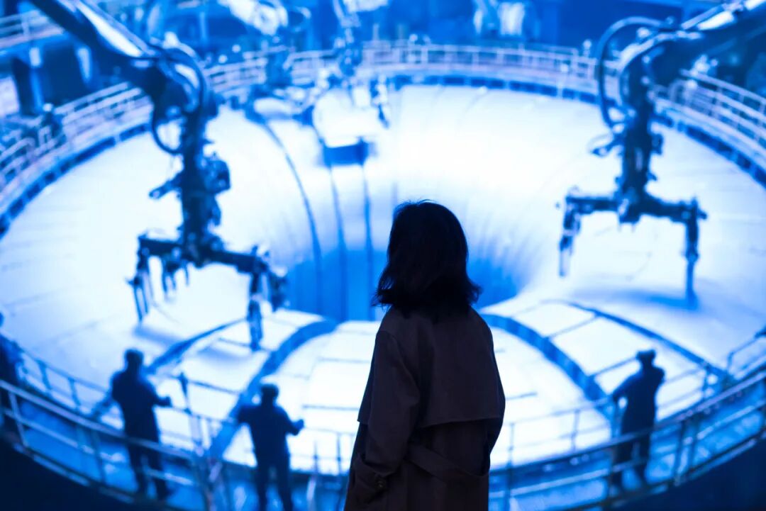 展览现场呈现了多个大科学装置作品《闪电》、《人造太阳》、《造浪》等,有效打破科学与艺术之间的学科壁垒,将抽象的核聚变原理转化为可直观感知的感官体验,进而引导观众深入思考人类与能源的内在关联。