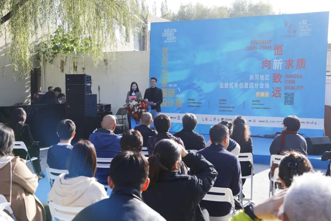 10月31日,2025北京国际设计周-孙河52号创意园区分会场“向新求质·恒新致远”开幕式圆满举行。北京国际设计周有限公司首席行政官徐斯、国家文创实验区管委会副主任褚雪霏、孙河乡人大主席刘芳、孙河52号创意园区首席执行官吕宏利等,与园区企业及孙河社会各界代表共赴了一场 “新”与“质” 的美学之约。