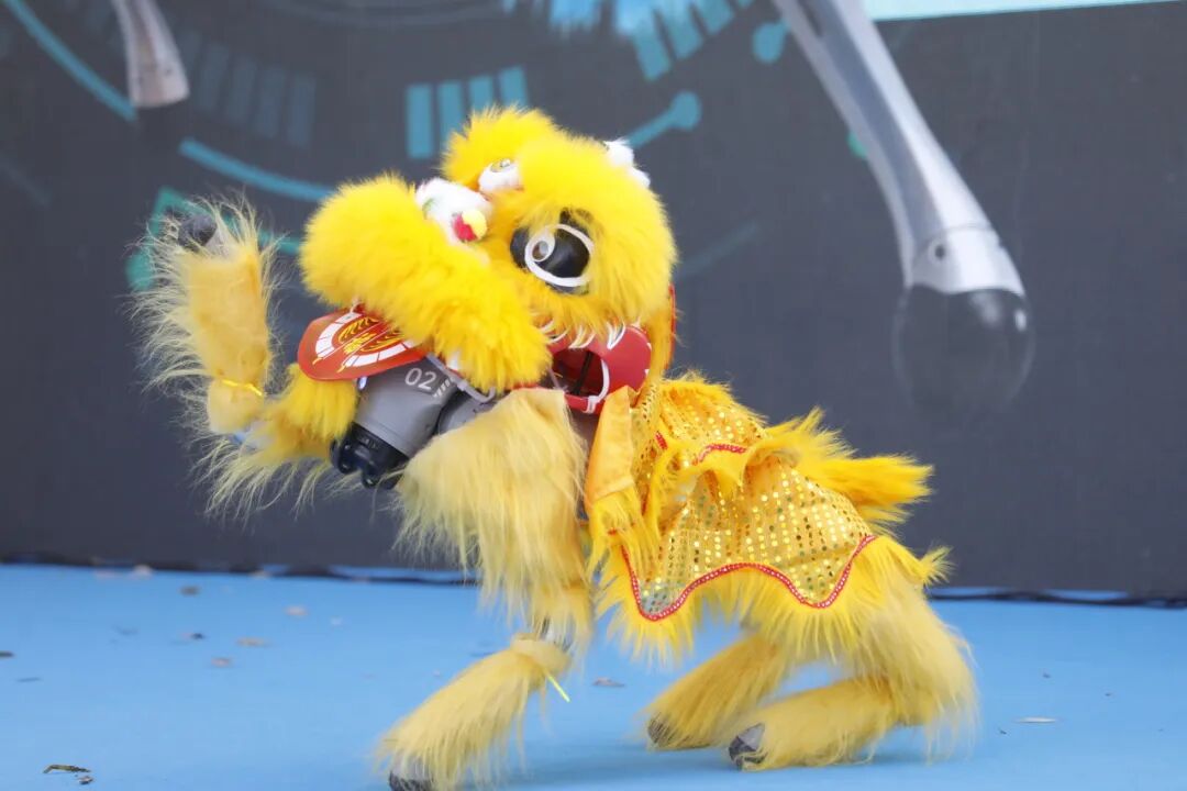 活动现场亮点纷呈,传统与现代艺术交相辉映。相声《我是书法家》、箜篌演奏《琵琶语》《大鱼海棠》等节目展现东方美学魅力,《机器狗舞狮》《心源形意拳法》则以科技赋能传统技艺,赢得观众阵阵掌声。表演间隙,背景板滚动展示园区优秀企业案例,台下互动频频,气氛热烈。