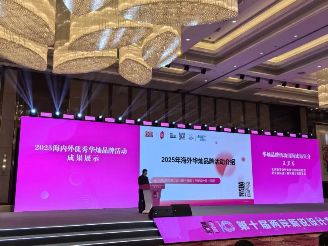 全国人大常委会副委员长、民革中央主席郑建邦出席颁奖仪式并为第十届华灿奖特等奖获奖者颁奖 (左右滑动显示更多) 会议介绍了第十届华灿奖评审情况与台港澳赛区参赛情况。第十届华灿奖共征集作品128468件,吸引484496名海内外青年设计师参赛。其中台港澳及海外设计师4397人参赛,比第九届环比增长30%。本届评选出特等奖4项、一等奖435项、二等奖1071项,三等奖1443项,路演奖6项。 颁奖仪式上,首都文化科技集团负责同志接受了与会领导颁发给歌华传媒集团的华灿年度优秀品牌活动证书,北京歌华设计有限公司、北京国际设计周有限公司负责同志接受了与会领导颁发的华灿奖定向主题征集单位感谢状,并与共13家机构一同进行了华灿品牌活动合作签约。 颁发“年度优秀品牌活动”证书 颁发感谢状 合作签约 2025年,中华中山文化交流协会赴法国、意大利开展赛事宣介,与中国高等教育学会、昆山市人民政府、歌华传媒集团、无锡灵山文旅集团等相关单位,以及民革16个地方组织深化合作、强化联动,举办了包括华灿奖赛事在内的53项华灿品牌系列活动,“华灿”品牌“流行大陆、风靡岛内、闻名世界”的目标愿景正变为现实。 王昱东受中华中山文化交流协会委托,向与会来宾介绍了华灿品牌在海外落地推广的成果与经验 北京国际设计周作为“华灿奖”的长期承办单位,自2023年起策划发起了“华灿运河”定向主题征集。在本届大赛中,“华灿运河”赛道共收到了超过8400件参赛作品。经过各评审专家的严格筛选,最终有301件优秀作品脱颖而出。目前,在企业伙伴的大力协助下,部分获奖作品已完成转化打样,精美的实物样品在“昆山有礼”主题市集上首次亮相,赢得了广泛关注。 郑建邦主席在参观市集时,特意驻足“华灿运河”展位,详细了解了作品从创意到实物的转化过程,并对作品的设计理念、工艺质量以及产业化前景给予了高度赞赏。 从米兰的古典街区到巴黎的现代展场,从大运河的文化命题到国际舞台的聚光灯下,歌华和北京国际设计周,作为华灿品牌坚定的服务者、连接者和推动者,将持续利用自身的国际设计交流网络,将华灿品牌嵌入全球话语体系;也将通过扎实的赛事组织,让每一个优秀的创意都能被看见、被实现。