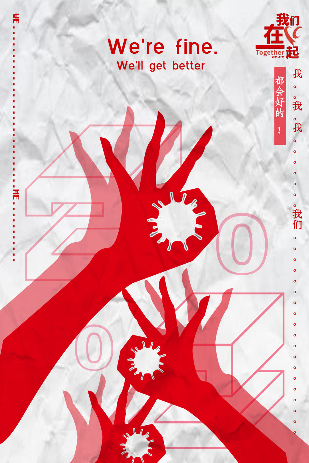 但是目前国际上的疫情持续升级,世界卫生组织已经宣布:新冠肺炎疫情成为全球大流行,并将疫情全球风险等级上调为:非常高!此时也恰逢“我们在一起”2020抗击“新冠肺炎”全球招贴设计公益征集活动海外征稿阶段,近日在意大利的社交媒体平台上出现了一幅名为《Everything will be fine》的设计作品。