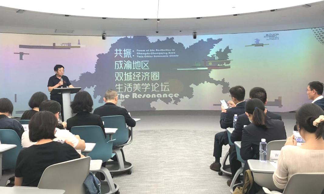 展览开幕式结束后,以“共振:成渝地区双城经济圈生活美学”为主题的学术论坛在光科技馆2号智慧馆召开。四川美术学院艺术人文学院学术院长、中国美术家协会理论委员会副主任黄宗贤教授担任本次论坛的学术主持。与会嘉宾学者围绕艺术乡建、社区美育与非遗融创等话题展开热烈讨论,探讨艺术的边界转化,共同探究艺术与生活美学发展的新路径。