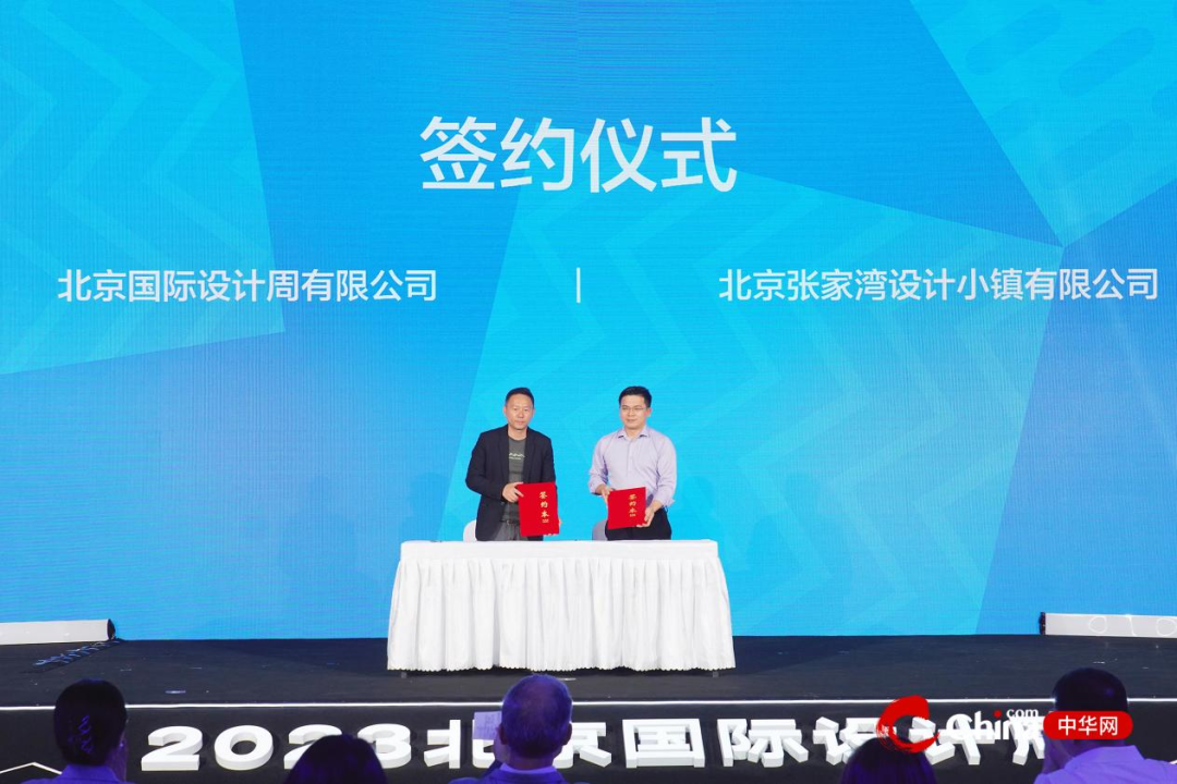 北京国际设计周有限公司副总经理朱毅与北京通州投资发展有限公司党总支委员、董事、副总经理,北京张家湾设计小镇有限公司党支部书记聂学军在现场签署了战略协议。